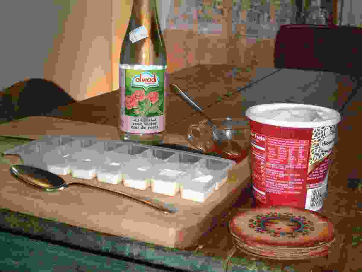 Ingredients1 pint vanilla ice cream1 generous tbs rose water6 tbs heavy creampinch of saffron for color