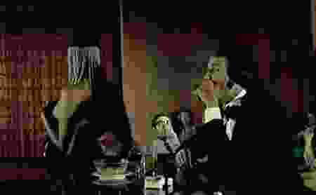 In a grand reception room, little girls holding candles circle a throng of chanting adults; Kuwaiti men recline in sofas, dazed, smoking what appears to be hashish; and two German shepherds are caressed by the writhing, just-short-of-orgasmic hostess, Soraya. Stumbling in by chance, a fellow named Anwar recognizes her and recalls their meeting and short-lived affair of years past, back when she was an exotic dancer in Bangkok. A little later, we learn Soraya is having an affair with her mother-in-law, an old woman dressed in an Abaya and confined to a wheelchair.