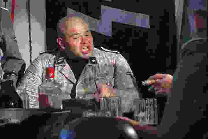 With Boca Negra, Okon not only aims to deceive our expectations regarding an empty mise en scène that stands for an ahistorical reenactment, but he also confronts us with the multiple resonances of the actors’ passionate political fetishism. While this first component of the work will be played on five plasma screens in order to create a pentagon shape meant to surround the viewer, the piece’s second component will feature some sort of behind-the-scenes projection, in which the marchers, still dressed up in their costumes, share some drinks and discuss their take on the importance and meaning of National Socialism today. For some of them, it’s a personal ideology whose uprightness affects one’s country’s political and economic well-being; for others, its principles are more about vindicating xenophobic nationalism rather than asserting racial superiority (one wonders how it could be otherwise, Mexico being a racially mixed and fragmented country — although one of the marchers suspiciously maintains that the Aztecs were Aryans, since they never mixed with other races).