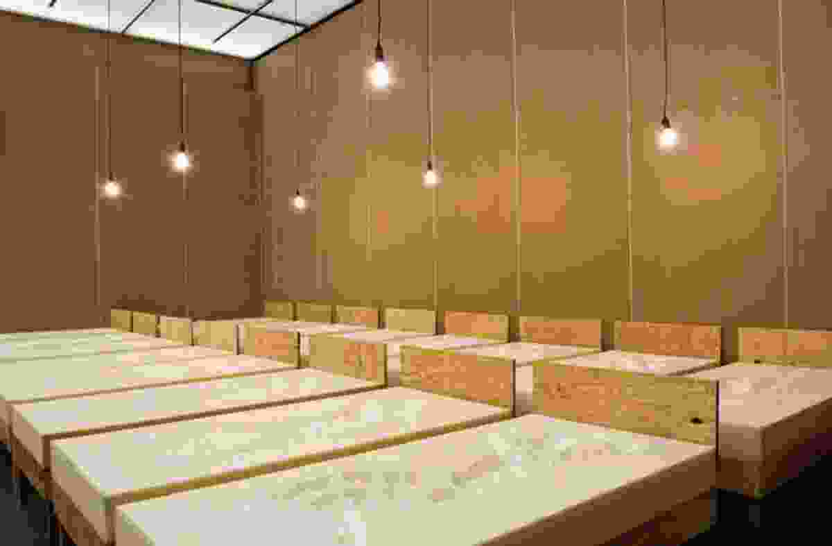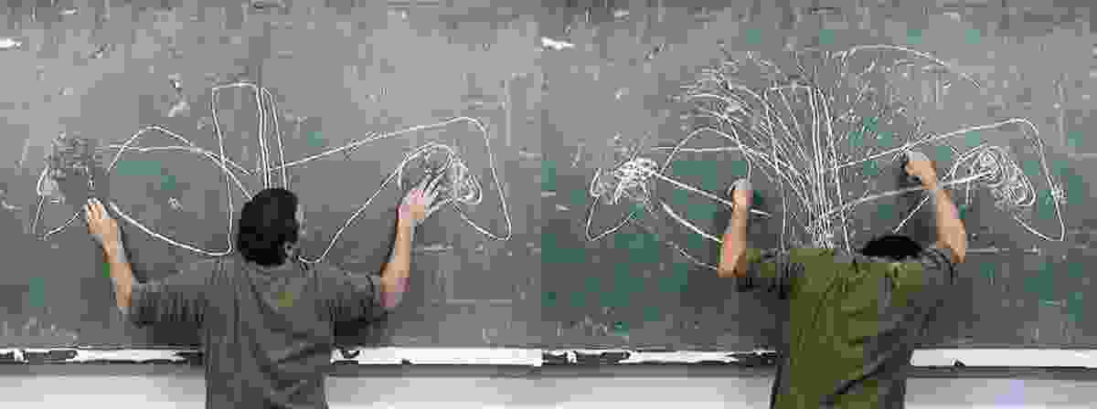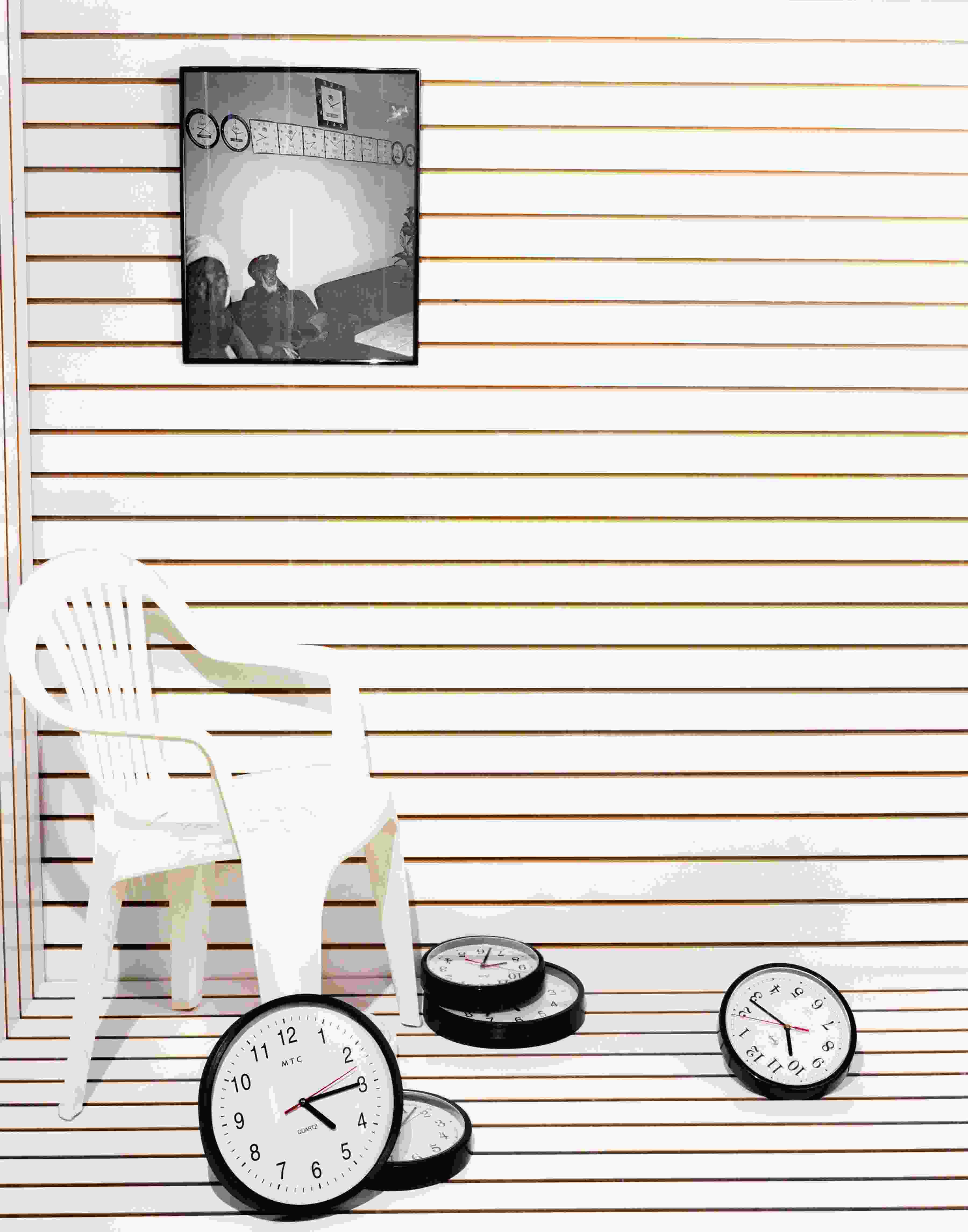 Hicham Benhound, La Salle de Classe. Courtesy of Agence VUTrisha Donnelly, Untitled, 1974–2004. Enamel on paper, 96 x 42 in. Collection of The Museum of Contemporary Art, Los Angeles, purchased with funds provided by the Drawings Committee. Photo by Brian ForrestShirana Shabazi, Courtesy the artistRoman Ondak, Sated Table,1996. Courtesy Galerie Martin JandaAtlas Group, Secrets in the open sea, Secrets in the Open Sea consists of twenty-nine photographic prints that were found buried under the rubble during the 1992 demolition of Beirut’s war-ravaged commercial districts. The prints were different shades of blue, and each measured 110 x 175 cm. The prints were entrusted to the Atlas Group in 1994 for preservation and analysis. In l996, the Atlas Group sent six of the prints to laboratories in France fortechnical analysis. Remarkably, the laboratories recovered small black and white latent images from the blue prints. The small images represent group portraits of men and women. The Atlas Group was able to identify all the individuals represented in the black and white images. All were individuals who had drowned, died, or been found dead in the Mediterranean between 1975 and 1991. Courtesy the artist