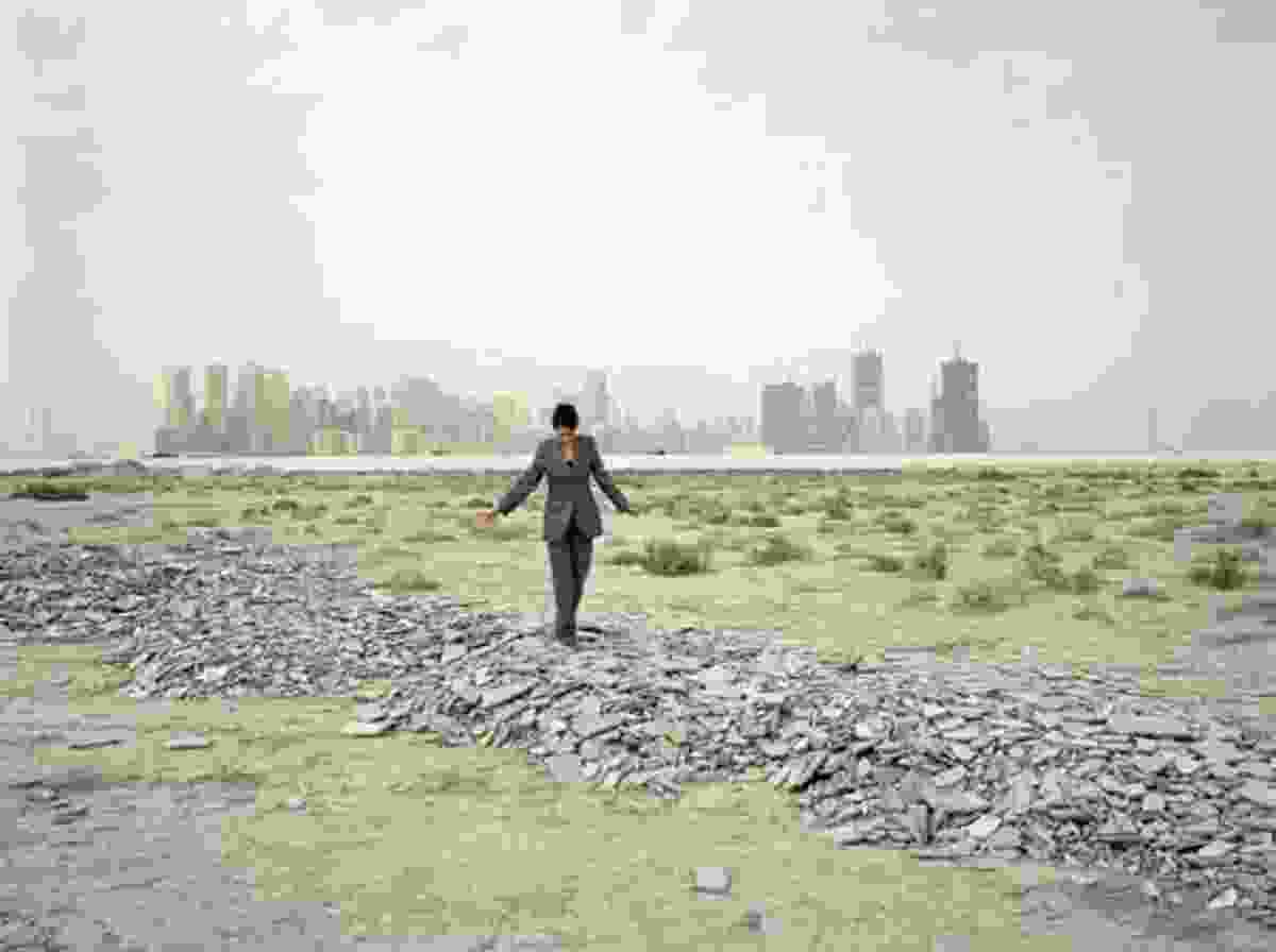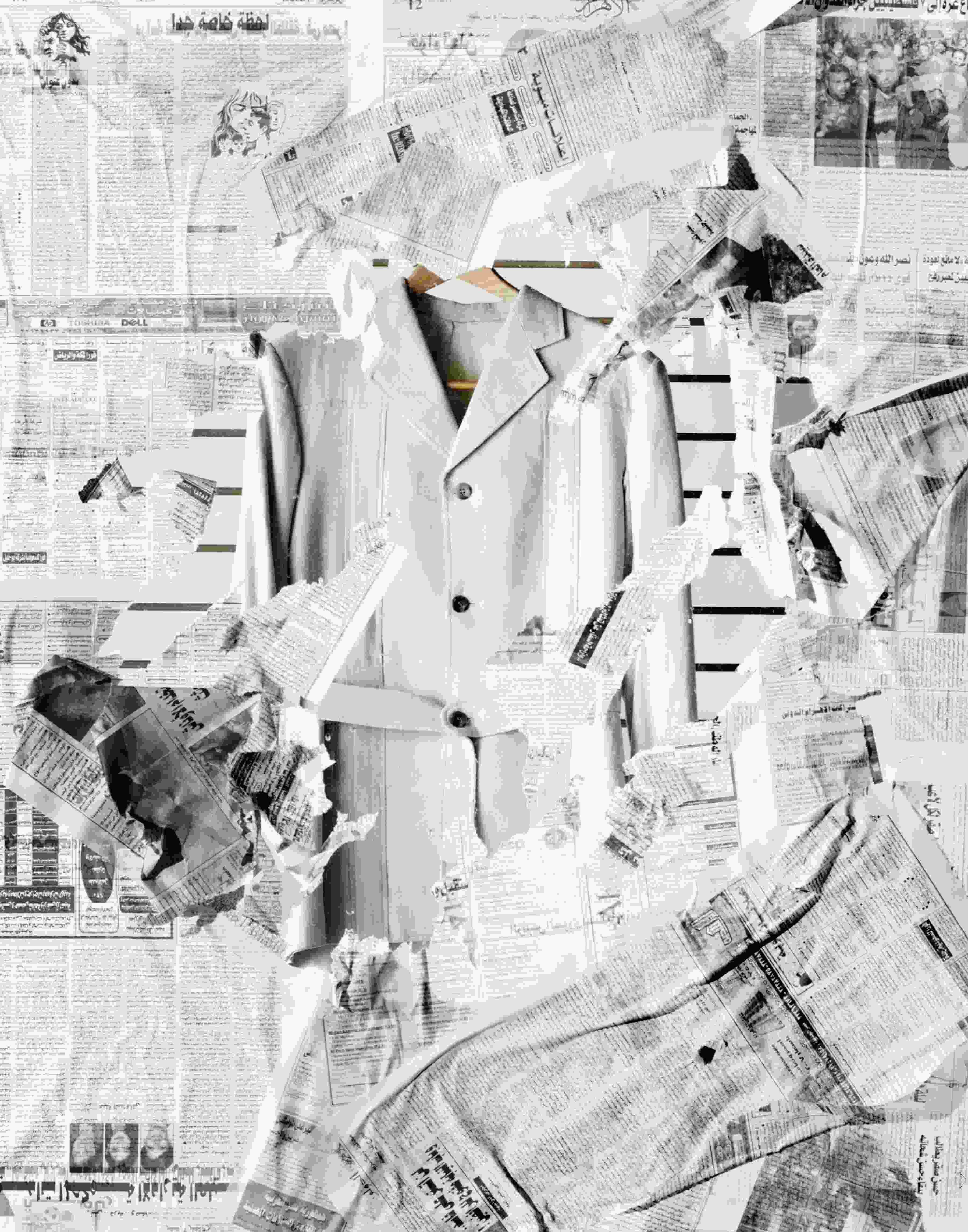 In his ongoing investigations of the Lebanese civil war and its aftermath, Walid Raad similarly rejects totalizing claims on historical representation. In We Can Make Rain but No One Came to Ask, a written narrative about a photojournalist who documents bomb sites preceded a series of unassuming prints in which images of a bombed-out city were collaged in a narrow strip across the top of an otherwise empty page. The overlapping images were barely legible, even on close inspection. Nor were their direct connections to the narrative readily apparent. The piece suggested the complexity of the war by refusing the possibility of gleaning meaning or any concrete semblance of truth.