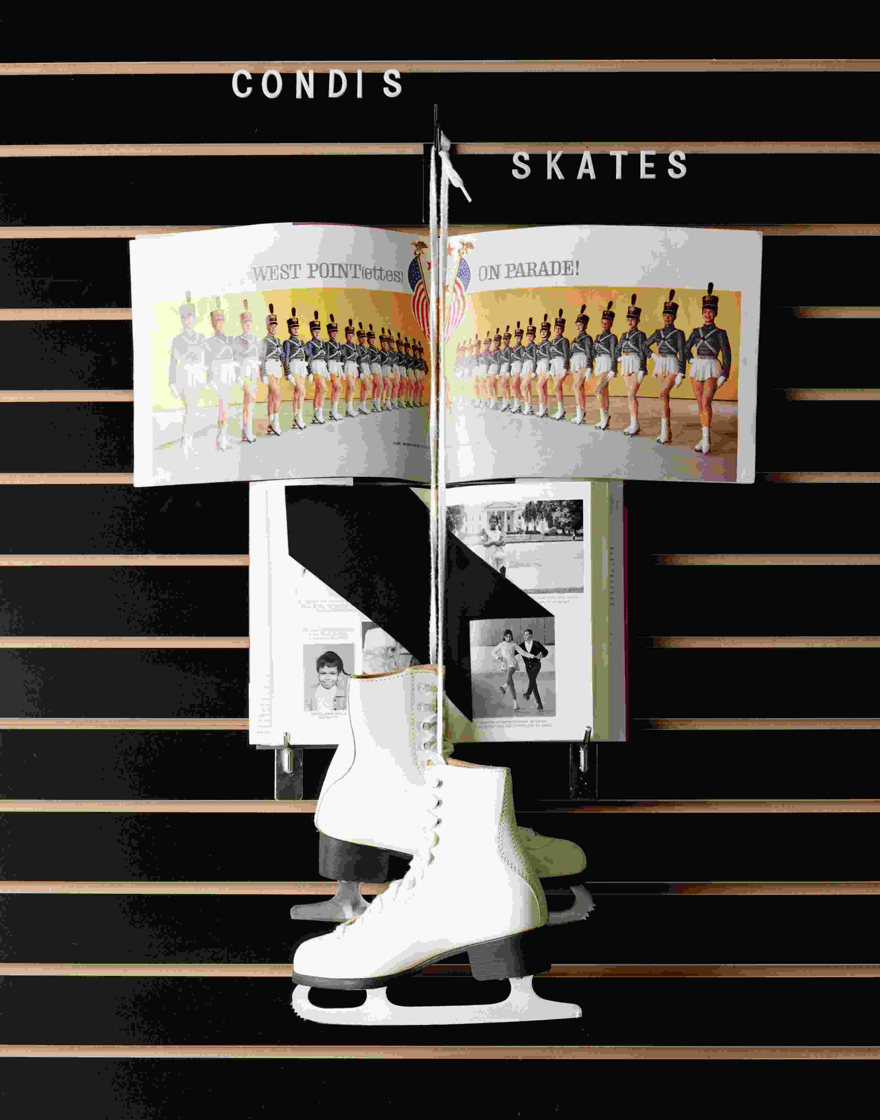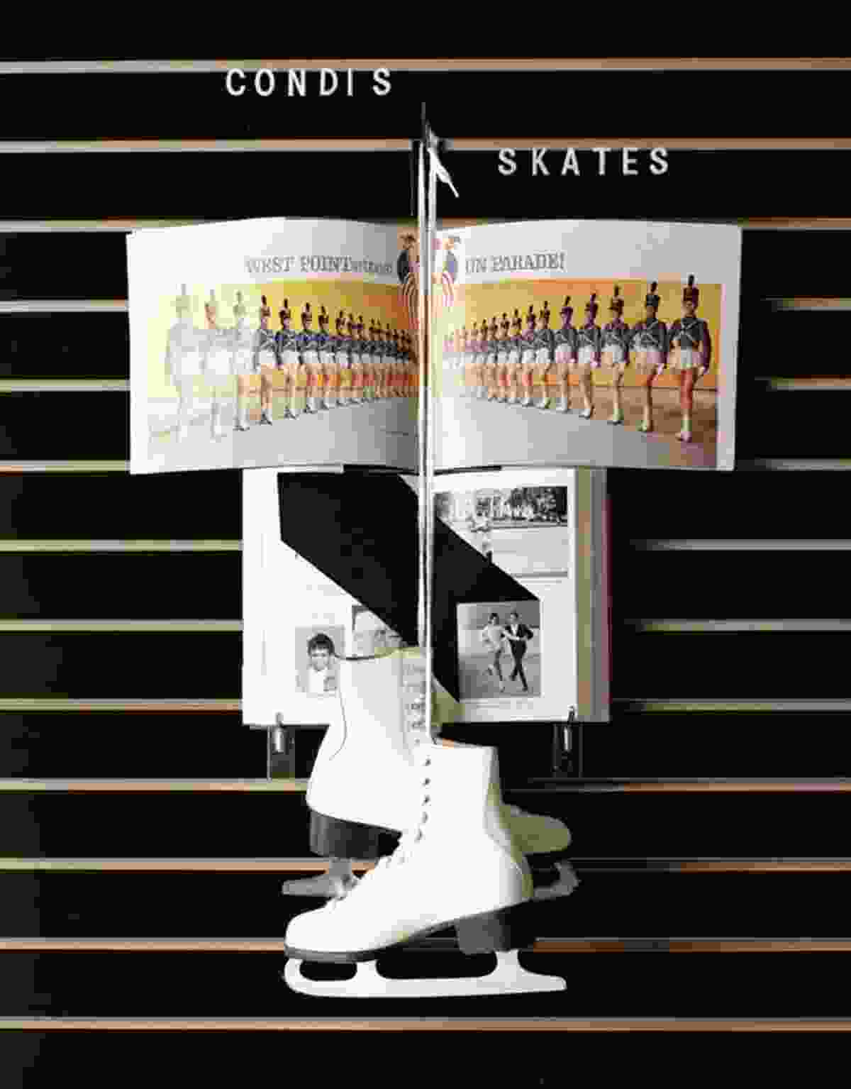 While the borrowed sculpture by Kobro and the framed photographs are, in essence, readymades, in Zarka’s staging of them they’re endowed with a particular momentum in terms of visual and conceptual impact. The suspension of action in images of skateboarders executing gravity-defying wall rides, backside kick flips, and caveman drop-ins and the faded grandeur of monumental modernist sculptures from the 60s result in an attention-grabbing collision of cultural aspirations past and the adrenaline rush of high-velocity physical activity.