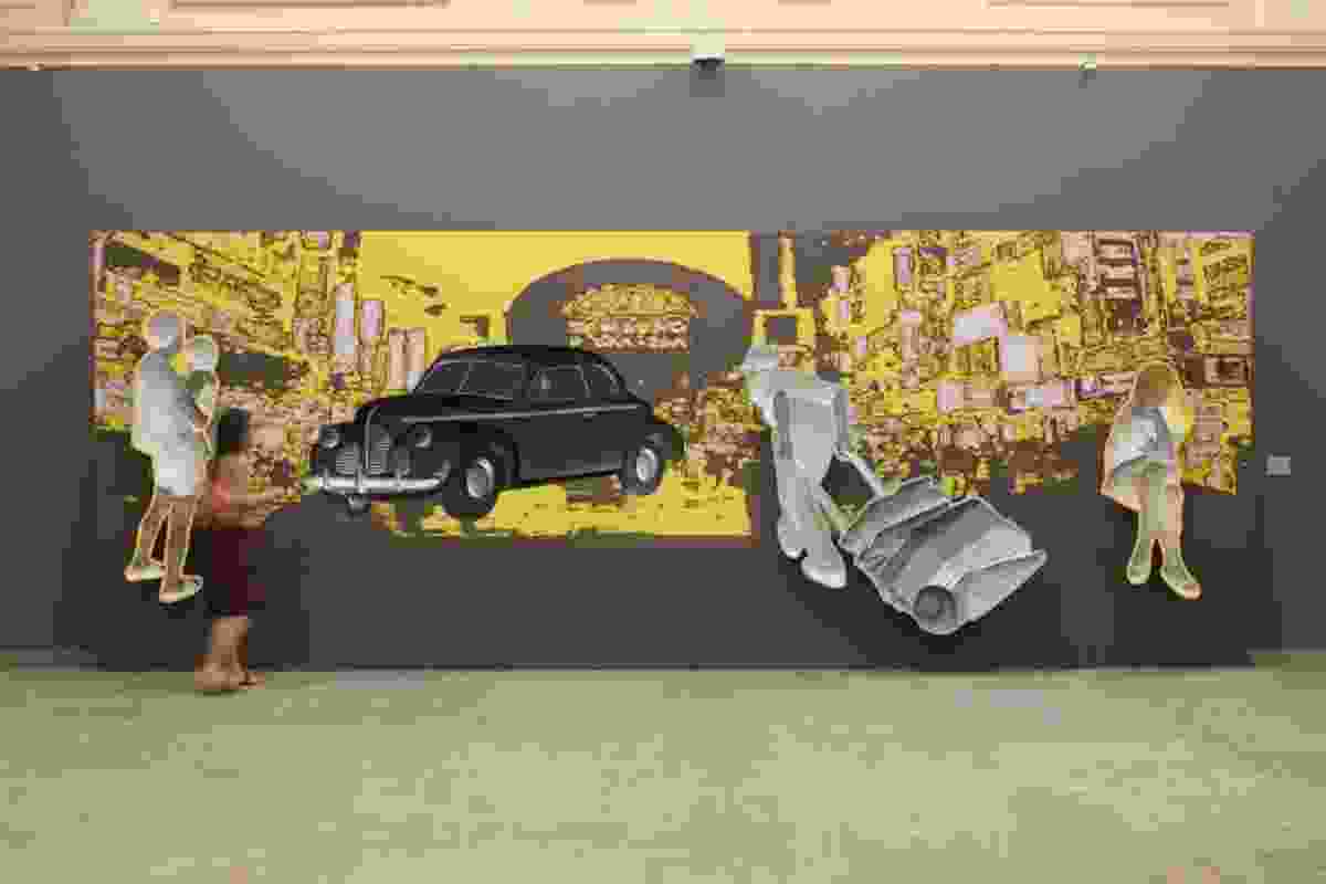 Such tension should never pass without comment, for such comment stands to be productive. If the images of the crumbling city of Bushehr could still evoke some sort of urgency to care, to react — or, to mention a very different set of images, if the shots of Khorramshahr claimed witness to the barbarity of the war fought between Iraq and Iran from 1980 to 1988 — then the last image in the exhibition introduced the quintessential paradigm of modern photographic practice: montage.