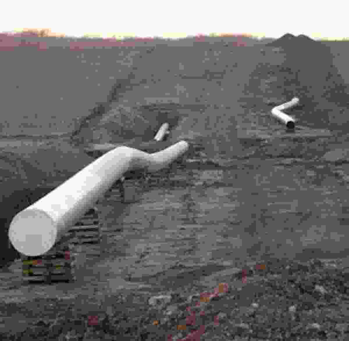 Raphaël Zarka collects sculptural forms. His ongoing series, Les Formes du Repos (Resting Forms), begun in 2001, consists of photographs of remnants of human enterprise littering the landscape: a stretch of unfinished monorail, a concrete breakwater, a lone pylon.