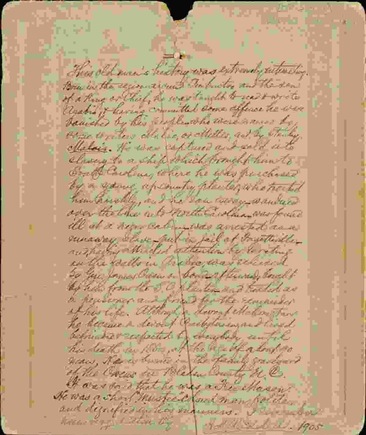 Said became something akin to the spectacular centerpiece of James Owen’s extensive library. He was given materials and space for study among the books, and he was showcased in a separate dwelling adjacent to the main plantation house, complete with its own slave. Said hosted a steady stream of visitors who came to hear him recite suras from the Qur’an, as well as Psalms and other Bible verses translated into Arabic. Said was said to be able to recite the entire Qur’an from memory, even late in his life, and it is rumored that he had transcribed a copy for himself; rumors also claim that the book was buried with him, at his death in 1865 at the age of ninety-four.