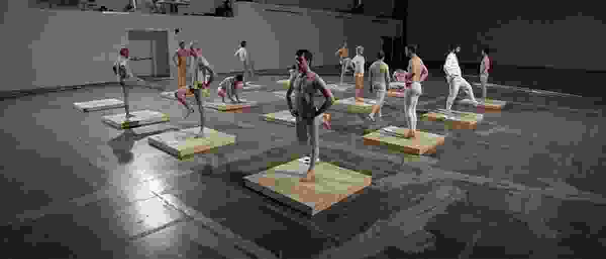 In addition to Beau Geste, Barrada’s show featured Gran Royal Turismo, a modified automated model of a miniature track that wound through the landscape of a threadbare village. From a tunnel gouged into a hillside, a tiny convoy of seemingly presidential cars emerged. As it traveled along the track, resplendent green palm trees rose from a series of holes in the ground. A drab facade swiveled to reveal a whitewashed wall. Moroccan flags fluttered in an artificial breeze. The piece was a comment on power, short-term beautification schemes, and the phenomenon of the third-world motorcade. Like much of Barrada’s work, it treated history, colonial legacies, modernist notions of progress, neoliberal economic development agendas, and environmental degradation, without ever coming across as didactic.
