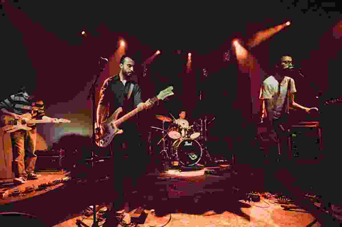 Photographer Tanya Traboulsi’s striking images provide an intimate, understated portrait of that scene, which has since emerged; Scrambled Eggs, Lumi, Tarek Atoui, Raed Yassin, and Mazen Kerbaj, among others, now have large followings. Some are even fixtures on the international festival circuit, playing to large crowds and at prestigious cultural institutions, from Paris to Berlin to New York. That strange success, too, is the subject of Untitled Tracks, which situates musicians who have become globe-trotting performers back in the context — the clubs, stages, living rooms, and, in some cases, refugee camps — that spawned them.
