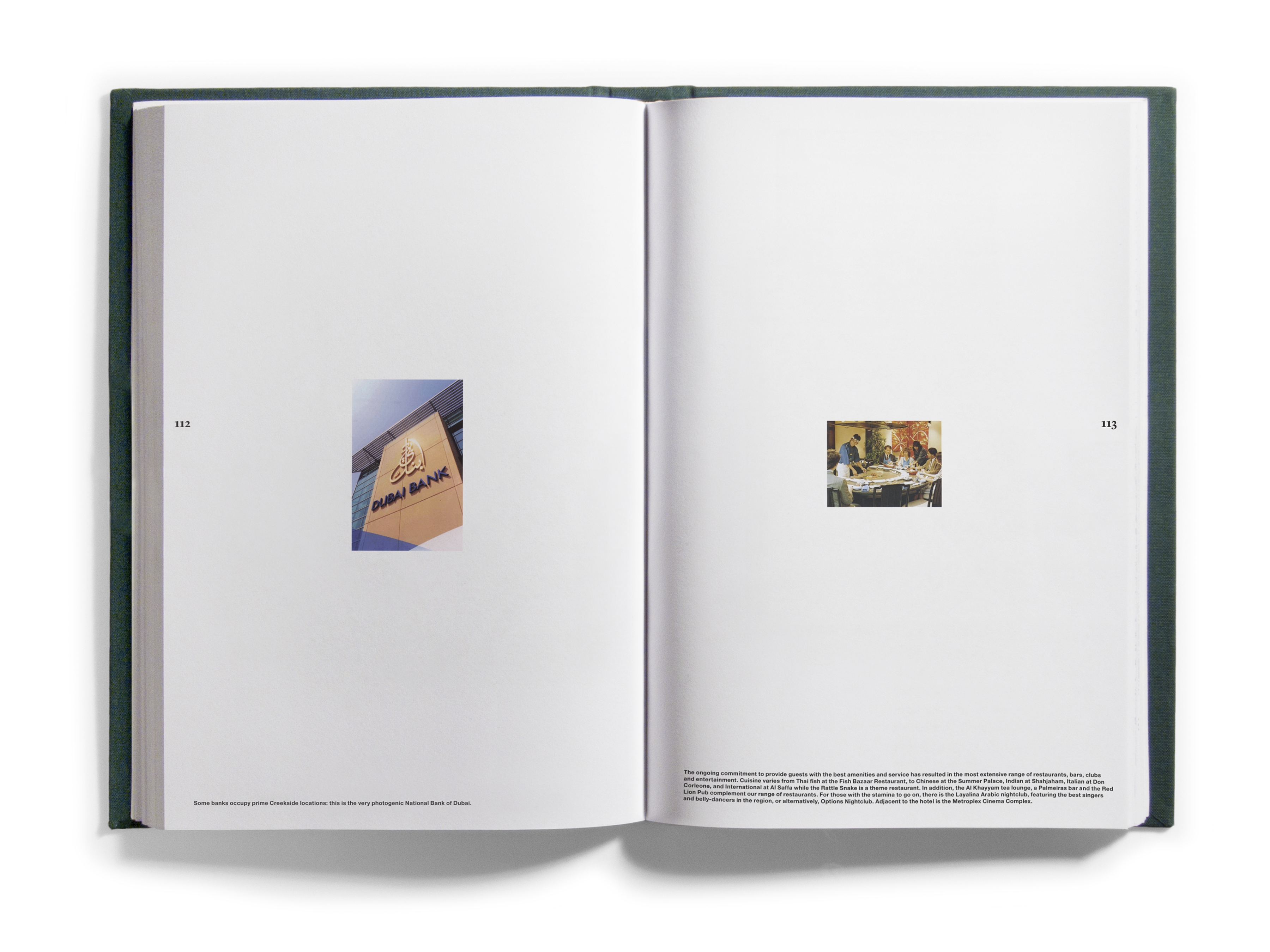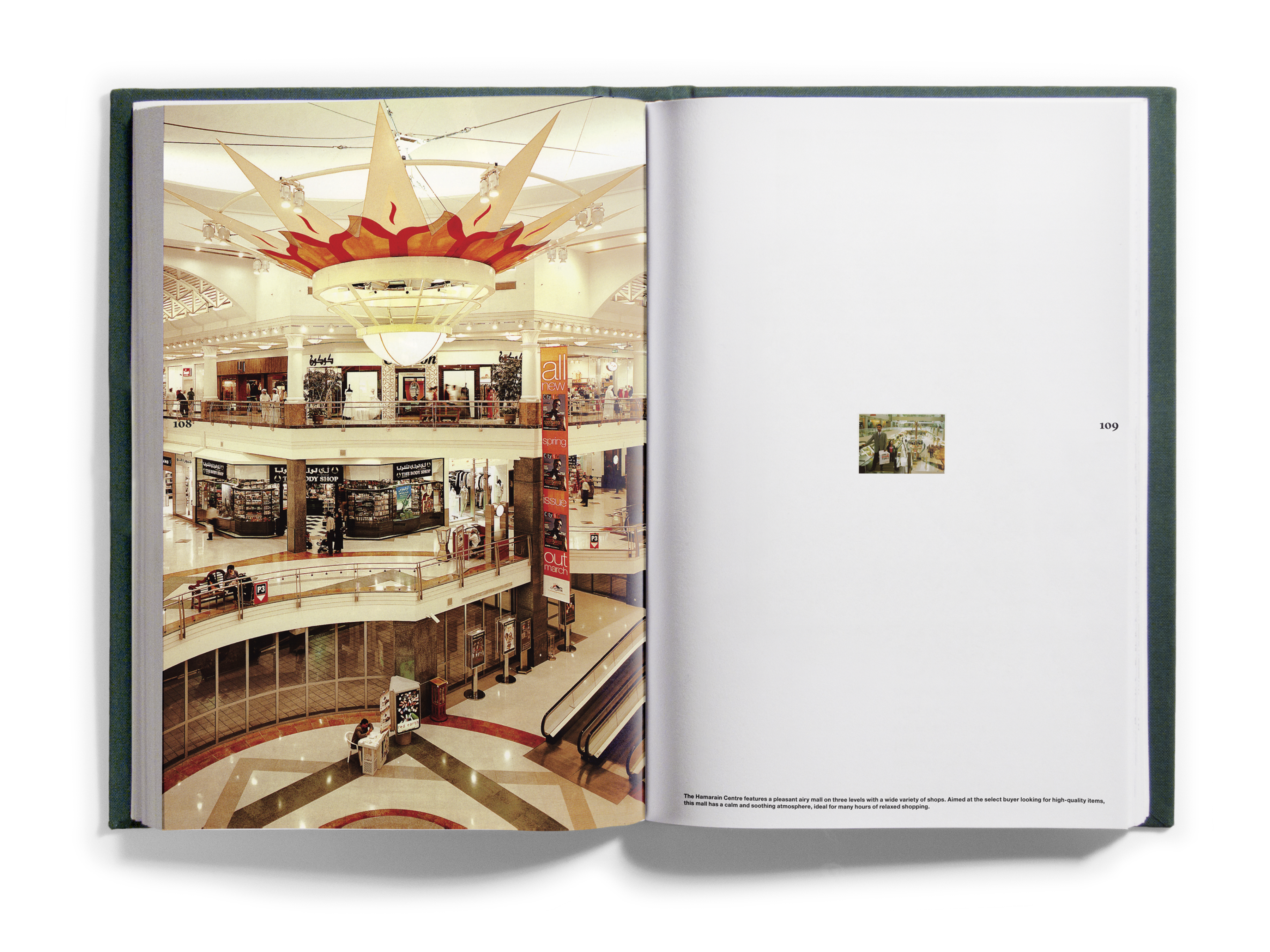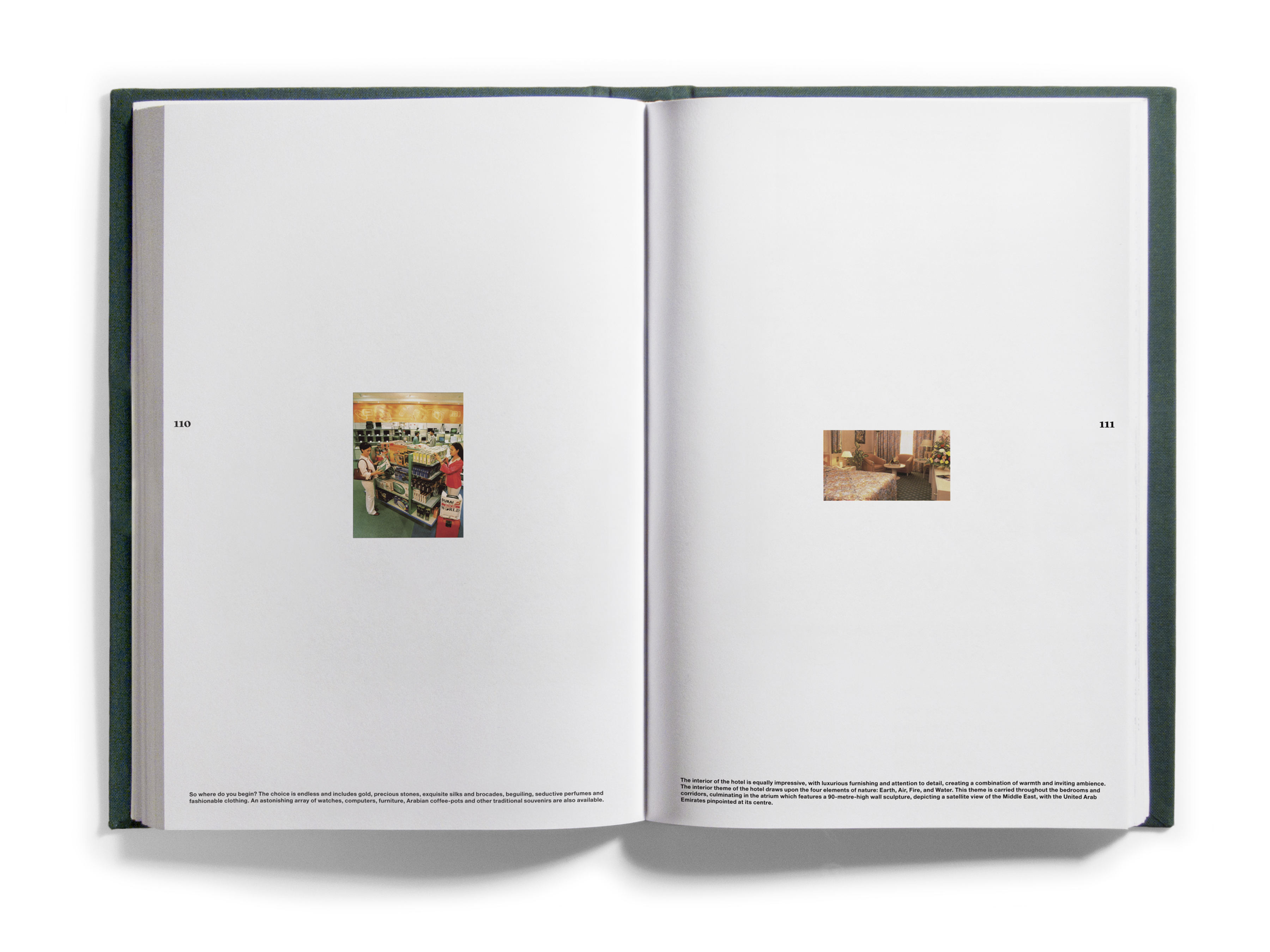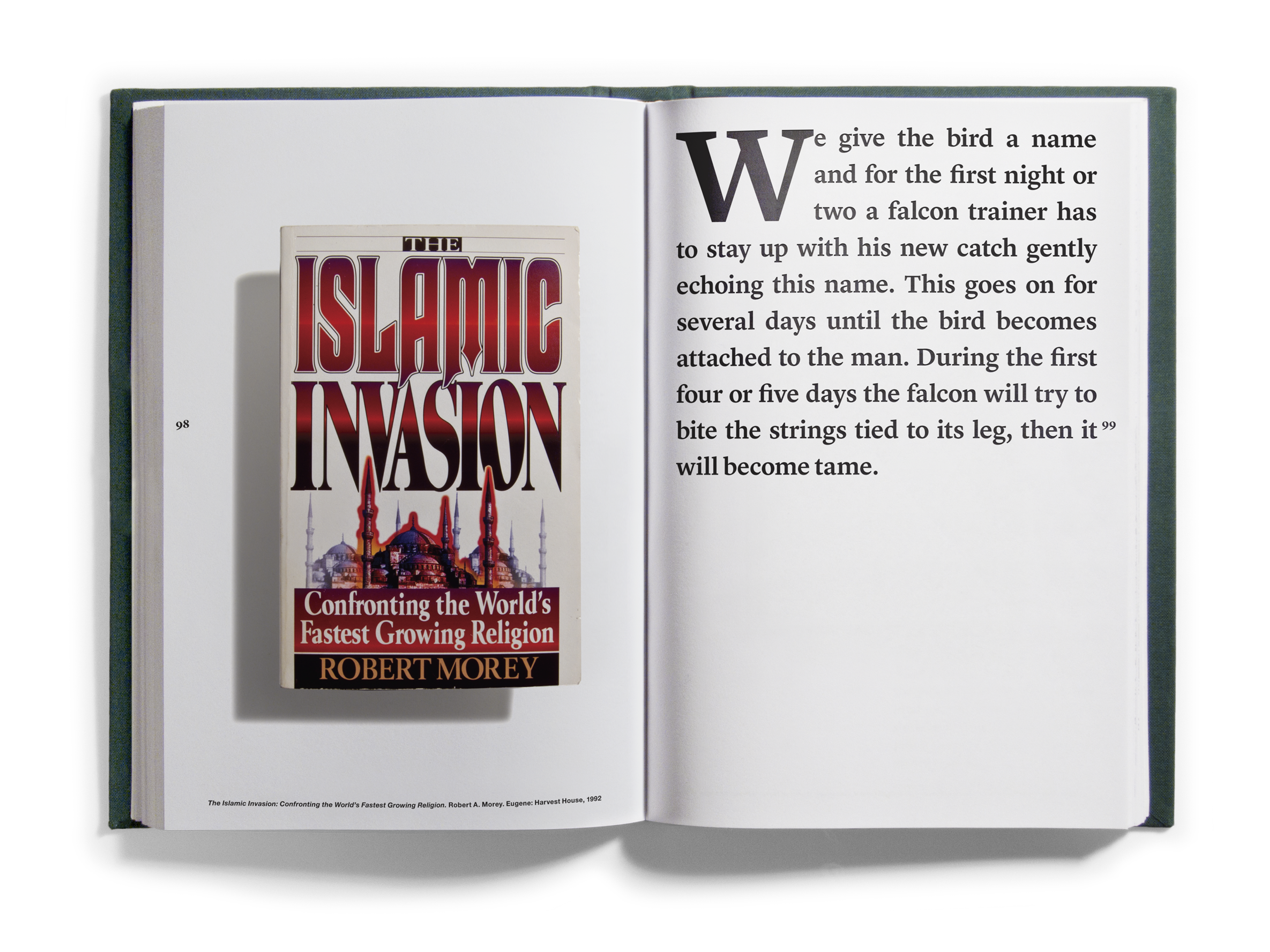 And quantities they did! Just shy of one thousand books came to occupy the Bidoun office, and as they arrived we read them — all of them, book by book. As we read, we marked passages and images for transcription and scanning, which were then indexed according to topics — descriptions of artworks, photographs, flags; jokes and sexual innuendos; captions, acknowledgments, asides. Things that, considered out of context, revealed a surplus or a deficit of meaning. Those texts and images were then organized into four books that were suspended by chains from the ceiling of the New Museum at strategic points in the exhibition space. Three of the books corresponded to general categories: Home Theater/pulp, Natural Order/corporate publishing, and Margin of Error/“other.” A fourth book, Further Reading, purported to be a glossary for the other three. We called the books catalogs, though as such they were incomplete, inaccurate, and perplexing. What the catalogs did do was provide an example of one way of reading the library — to look over our shoulders as we read the library, in its entirety, and to see some of the associations and parallels within. This issue of Bidoun is in a sense a third reading of the library and a rereading of those catalogs — they are reproduced here, in sequential order, nested within the pages of the magazine.