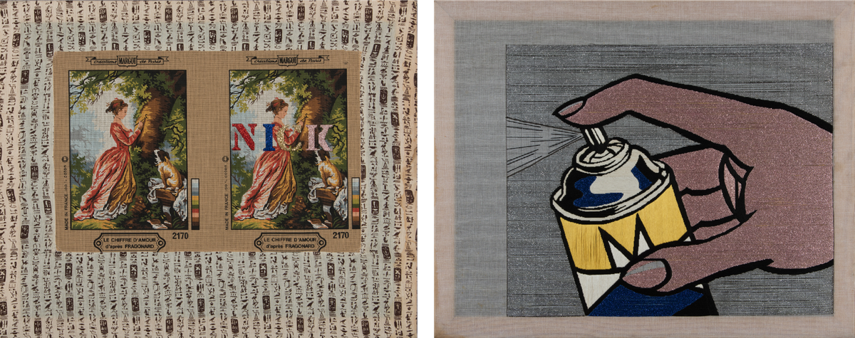 A prodigious visual artist, writer, and curator, Moufarrege made wry, sophisticated, and exuberant work over a ten-year career that spanned Beirut, Paris, and New York. His practice rethought the Western art canon and Levantine weaving traditions through irreverent engagements with painting and sewing, graffiti and collage, Pop and the esoteric. Having launched himself in Beirut in the 1970s, Moufarrege left shortly after the calamitous beginnings of the long civil wars and moved to Paris, where he started producing large, tapestry-adjacent works. He arrived in New York’s East Village in 1981, just as an art scene was coming together amid a handful of crumbling tenements. In that city, he curated unusual, much-talked-about exhibitions, penned high-stakes essays and manifestos, and showed his own unclassifiable artworks. New York is also where he died of AIDS-related complications at the age of 37.