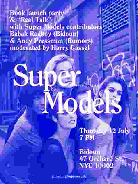 Book launch party& “Real Talk”with Super Models contributorsBabak Radboy (Bidoun)& Andy Pressman (Rumors, Bidoun)moderated by Harry GasselThursday 12 July at 7 PMBidoun47 Orchard StreetNew York, NY 10002www.gdnyc.org/supermodels