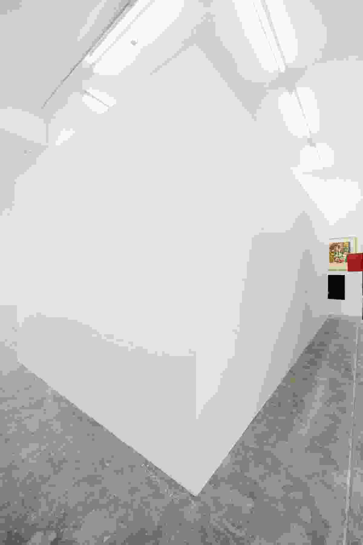 In one room of the gallery hung the unsold works of Syrian modernist painter Marwan from a retrospective earlier in the year. The room housing these paintings as well as other holdings from the gallery storeroom was dominated by an obtrusive white cube, leaving the paintings impossible to view except at an uncomfortably close proximity. Alongside a series of photorealist paintings of exhibition catalogs from the Museum of Modern Art in New York, artist Steven Baldi sealed off one entire side of the gallery with a glass wall, forcing visitors to retrace their steps to see the show in its entirety. Alessandro Balteo Yazbeck and Media Farzin contributed a sculptural installation that told the story of a cultural moment born of the Cold War that continues to have eerie resonance today. And Babak Radboy installed a section of gallery wall on loan from the Tony Shafrazi Gallery in New York, along with a photograph of the corresponding hole left by its removal.